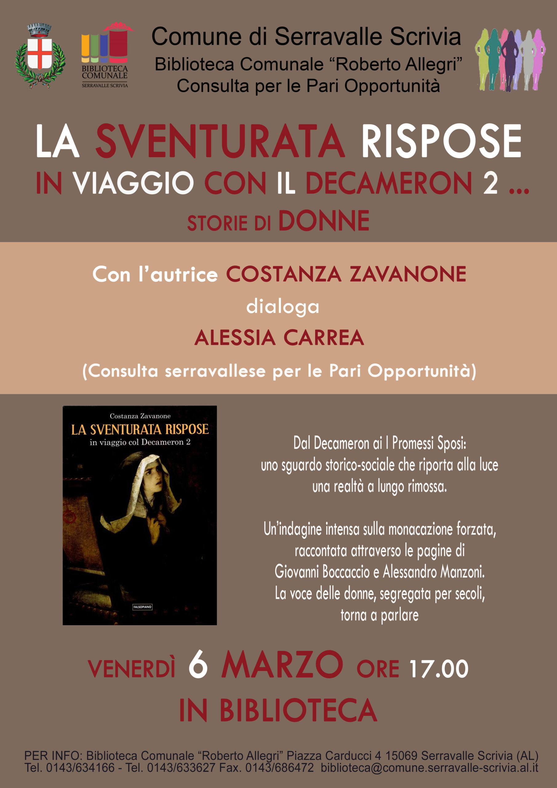 Venerdì 6 marzo alle ore 17.00, presso la Biblioteca comunale Roberto Allegri, in occasione della Giornata internazionale della donna, la Consulta serravallese per le Pari Opportunità organizza l’incontro dal titolo “La sventurata rispose. In viaggio con il Decameron 2. Storie di Donne”.