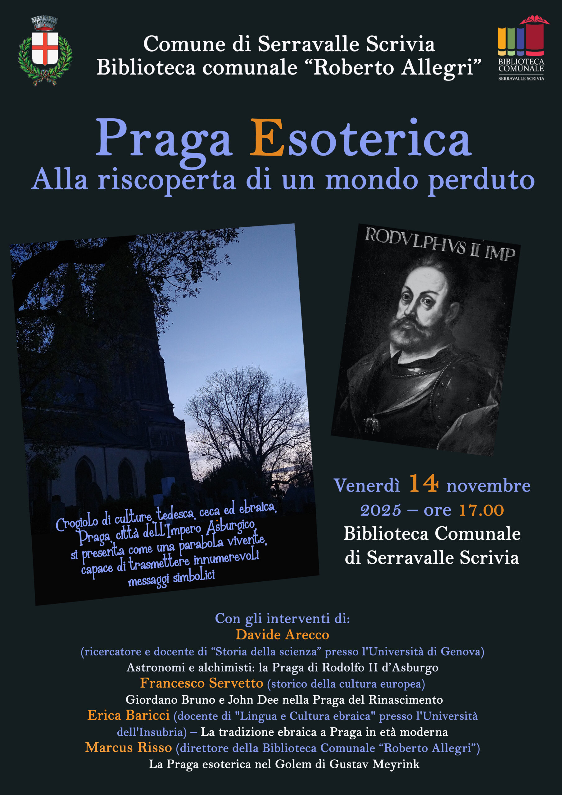 L’incontro “Praga esoterica: alla riscoperta di un mondo perduto” propone un percorso culturale tra astronomi, alchimisti, filosofi e leggende, con interventi di Davide Arecco, Francesco Servetto, Erica Baricci e Marcus Risso.