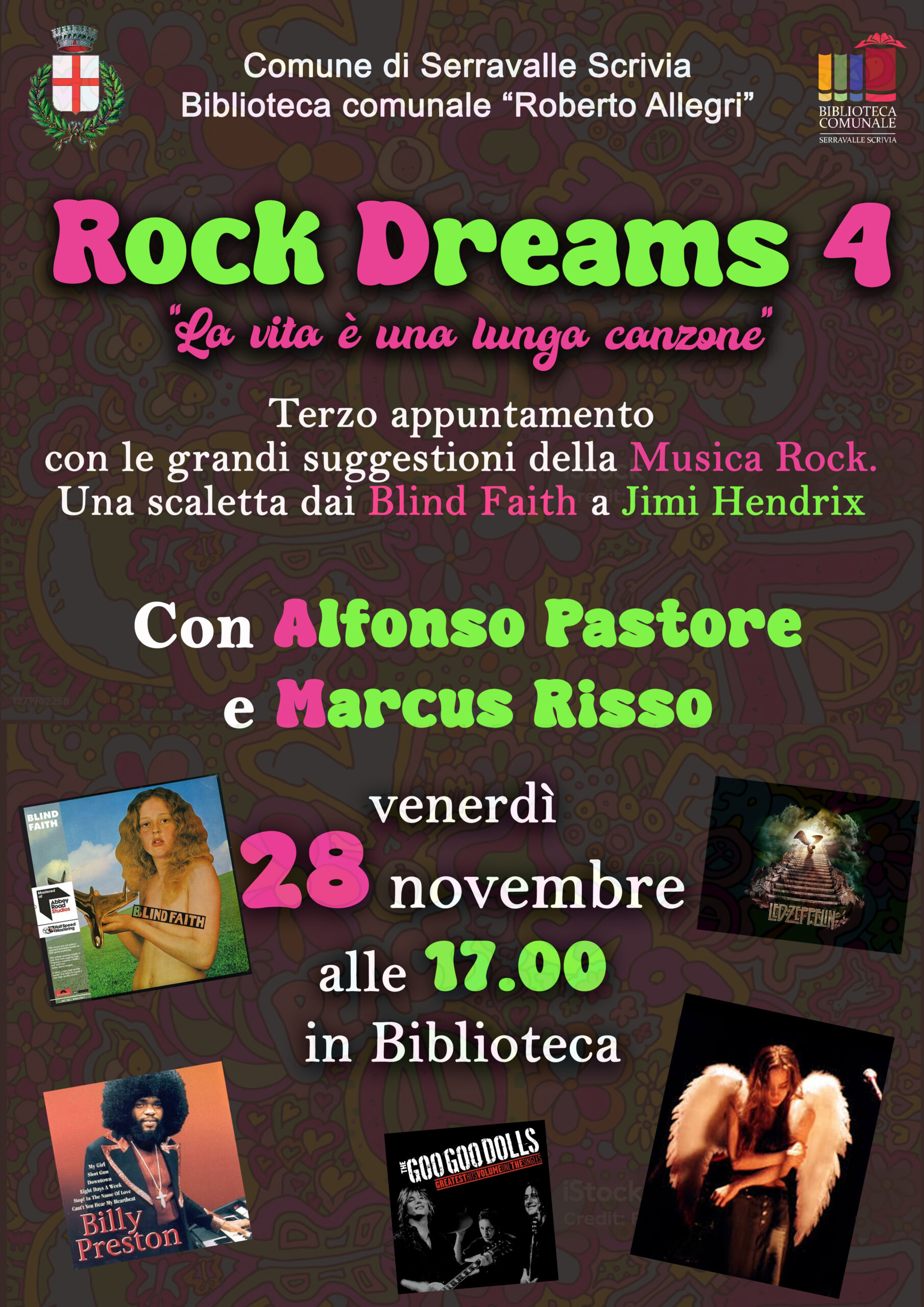 La Biblioteca comunale ospita un nuovo incontro del ciclo dedicato all’esplorazione della musica rock: “Rock Dreams 4: la vita è una lunga can-zone”, a cura di Alfonso Pastore, in dialogo con il direttore della Biblioteca, Marcus Risso.